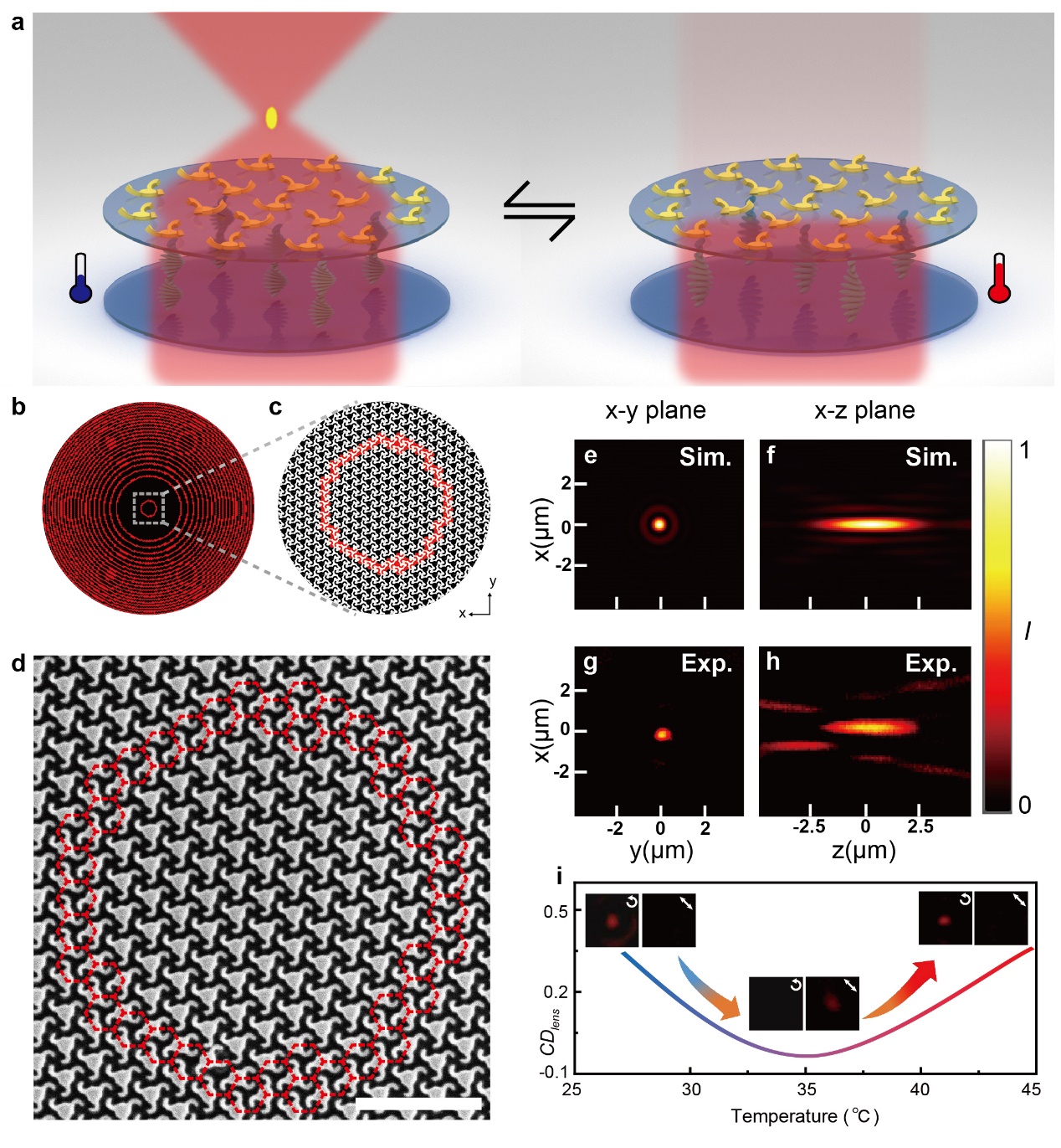 图3. 基于动态圆二色性的热控可调偏振光超透镜