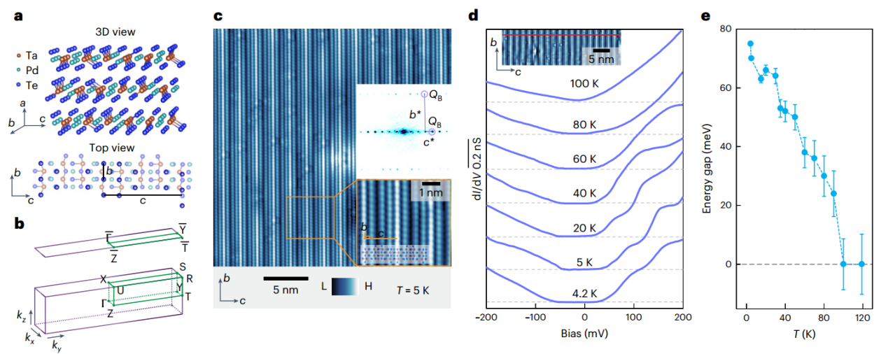 图1. Ta₂Pd₃Te₅的实空间表征,显示了T= 100 K附近绝缘体带隙的变化.