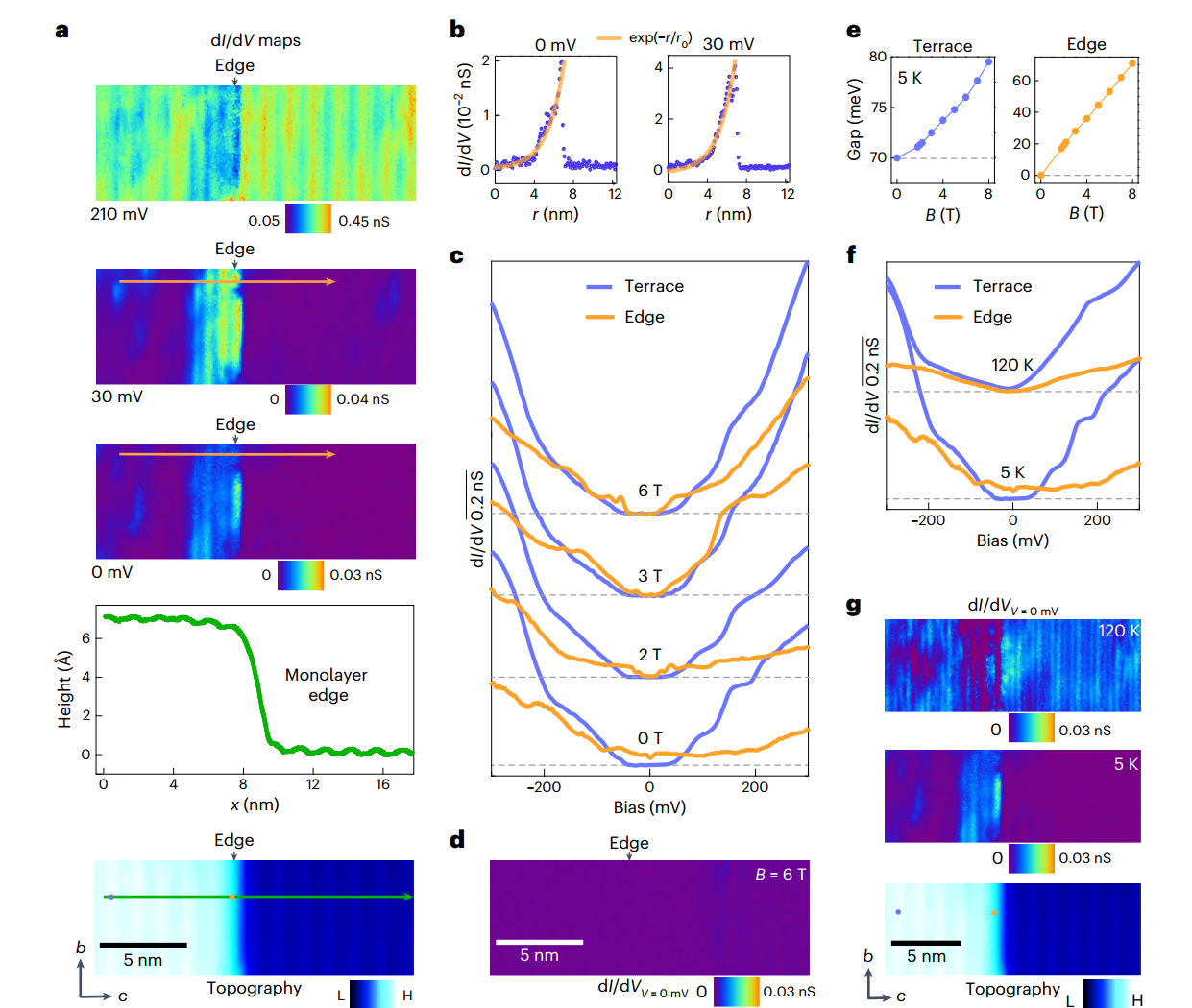 在本工作中,研究团队首先制备了高质量的层状材料Ta₂Pd₃Te₅单晶,首次观测到双重激子凝聚相:在100 K时由半金属态进入零动量激子凝聚态,4.2 K时进一步发生有限动量二次激子凝聚。团队通过极化角分辨光电子能谱测试发现,低温下电子能带发生轨道杂化,镜面对称性破缺,证实激子凝聚驱动了拓扑相变。同时,扫描隧道谱观测到体绝缘能隙,与理论模型预言的拓扑边缘态高度吻合。更令人惊奇的是,在外加磁场调控下,体系展现出动量序的可调性,为研究拓扑相变临界行为与对称性调控提供了实验窗口。